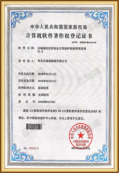 百瑞福秉承“創(chuàng)新一品質(zhì)一服務(wù)”經(jīng)營理念,現(xiàn)已發(fā)展為擁有強(qiáng)大競爭力和科技創(chuàng)新體系的擋邊輸送帶國家行業(yè)標(biāo)準(zhǔn)制定企業(yè)、山東省專精特新企業(yè)、國家級高新企業(yè)認(rèn)證、煙臺市智能化改造示范企業(yè),被國家煤炭安監(jiān)局指定為煤炭行業(yè)標(biāo)準(zhǔn)起草單位。