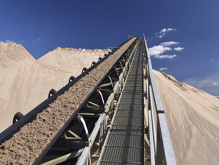 織物芯輸送帶是由多層浸膠尼龍(NN)帆布、聚酯(EP)帆布、EE型帆布為骨架材料,覆有具有不同性能的覆蓋膠,經(jīng)過壓延、成型、硫化等工序制作完成??椢镄据斔蛶Ь哂袔w彈性好、強(qiáng)力高、抗沖擊、耐屈撓性好、成槽性好、伸長率低等優(yōu)勢。